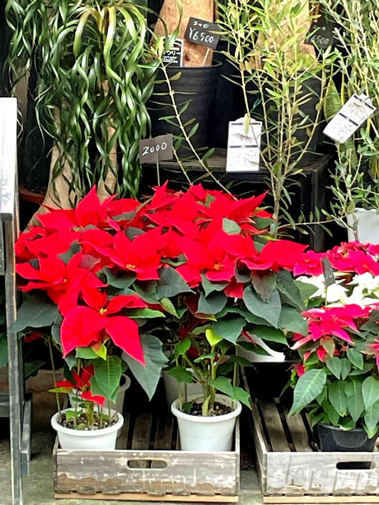 花屋さんの店先に、綺麗なポインセチアが、置かれていました。