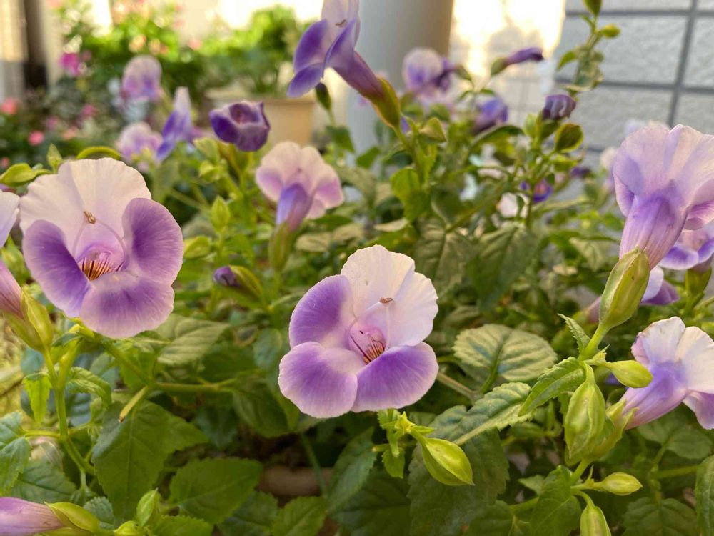トレニアさんは今期で一番花をつけています🌸朝日を浴びて綺麗です😊