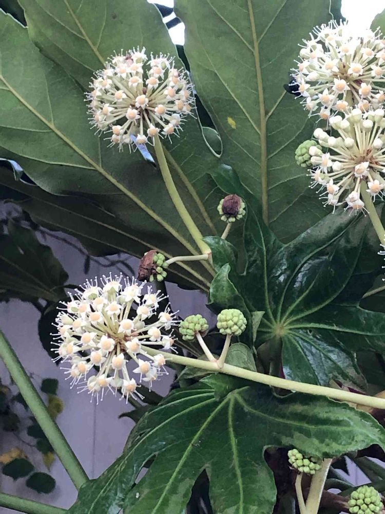 八手🌳 ヤツデ 散歩道脇民家の生垣