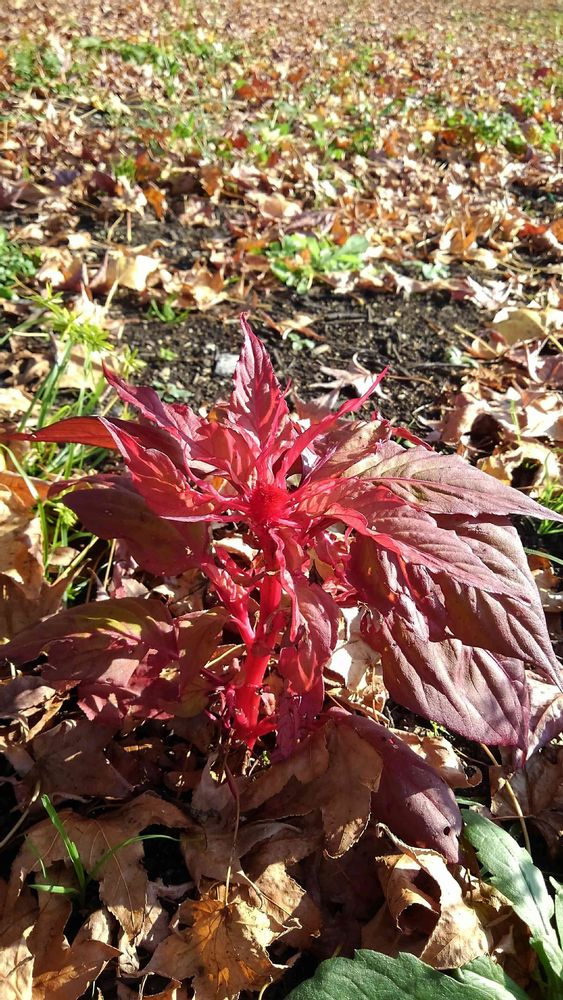 公園のベンチ横に、はぐれケイトウが🌼*・