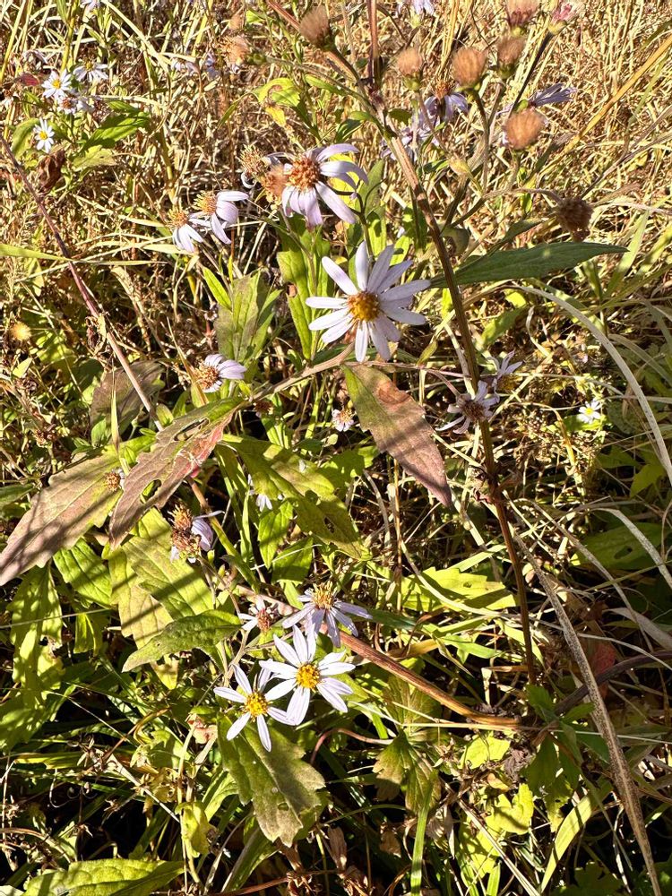 舌状花がややまばらですねえ、葉も「シロヨメナ」っぽいのですが、葉の裏表ともに結構ガサガサする。