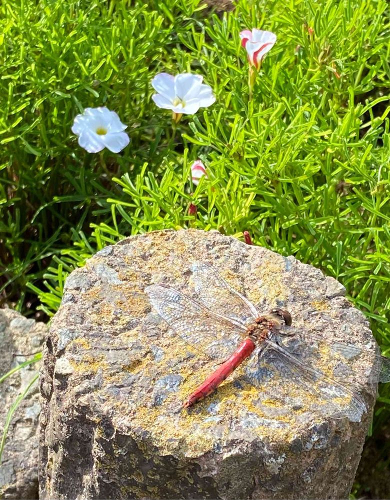 オキザリスの小さなお庭に、先日は慌てん坊のサンタ🎅さんが来ましたが、今日は、赤とんぼが遊びにきました。