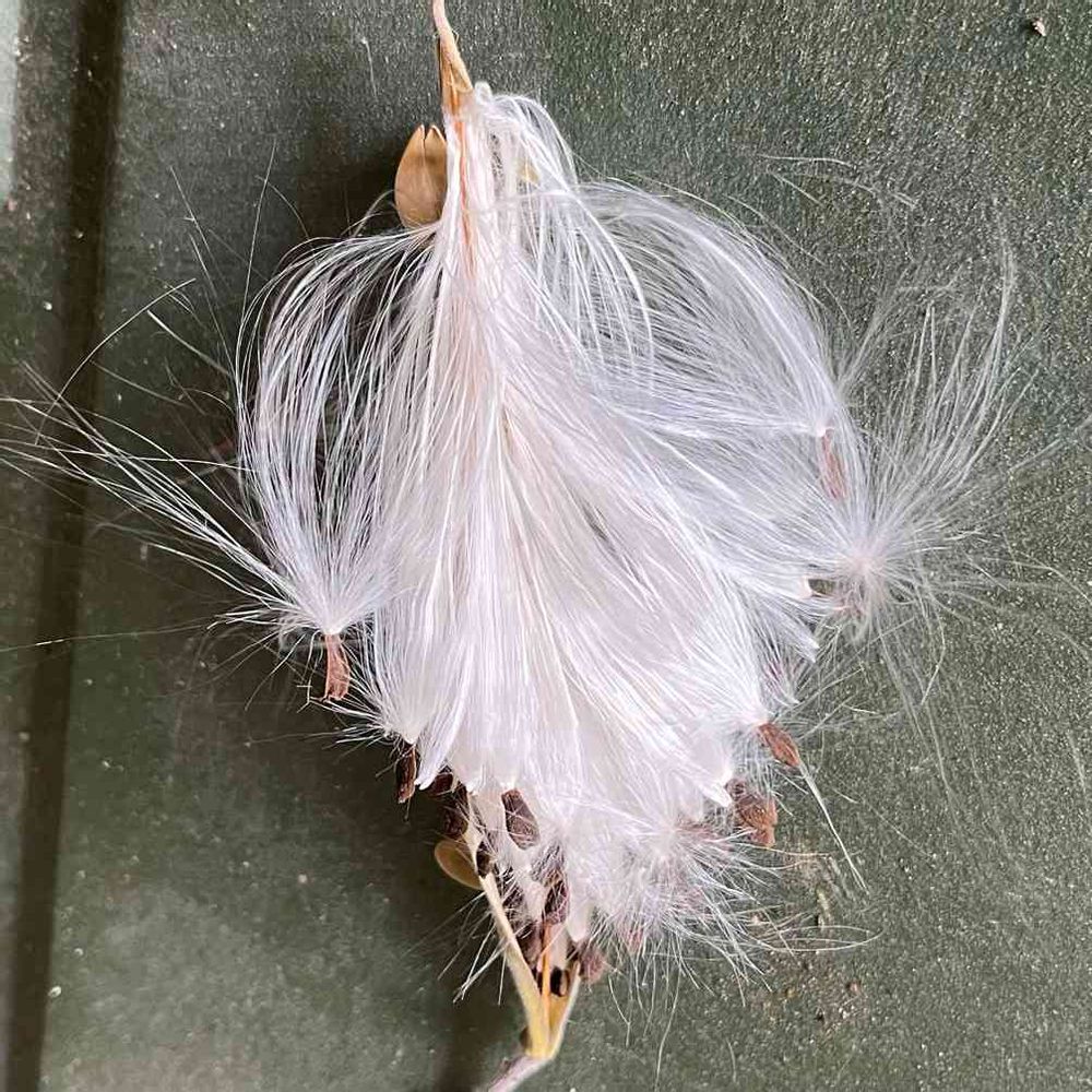 先日採取したオキシペタラムの種鞘。乾かして置いといたら鳥が胸を膨らませているような姿に🕊