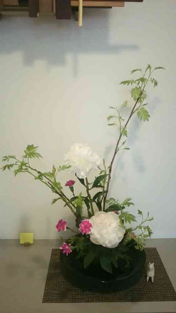 芍薬の白に赤いカーネーションがベストマッチですね(^^)