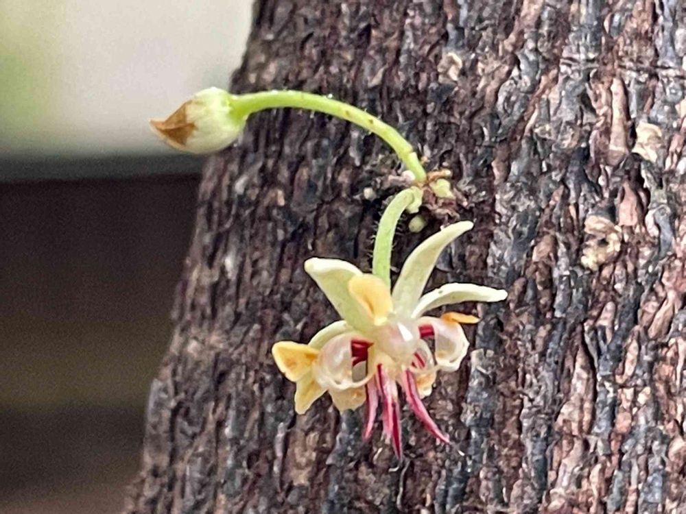 熱帯植物館でカカオの花が幹につき咲いていました🏵