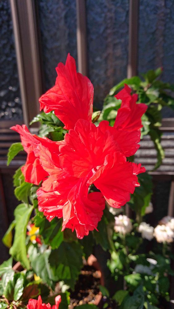 真っ赤に咲いているハイビスカス🌺、こちらが元気をもらっています。💕💕