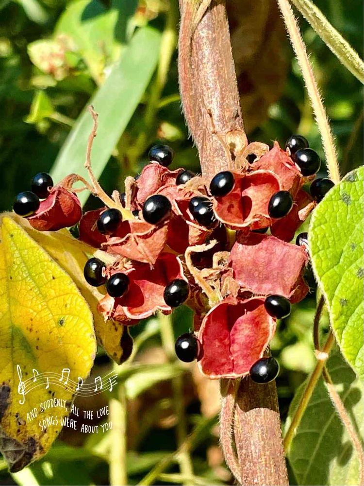そして、このタンキリマメ〜先日、私が叔母の家で見つけて投稿したコ〜エッ???何なんとクグってみたらこの名前で、初めて最近知った花〜ミッキーマウスカラーがカワイイけど、これも別名が🦊ちゃんが付くのは初めて知りました〜🤣😂✨✨✨