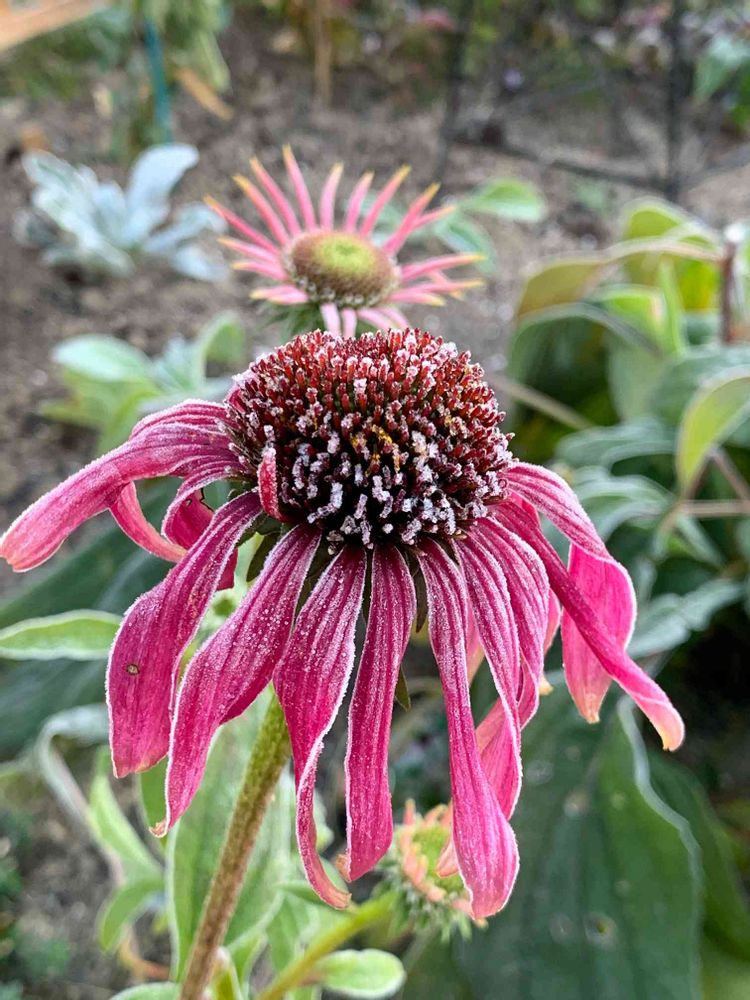 今朝のエキナセア、霜が降りて凍っていました❄️寒い❄️