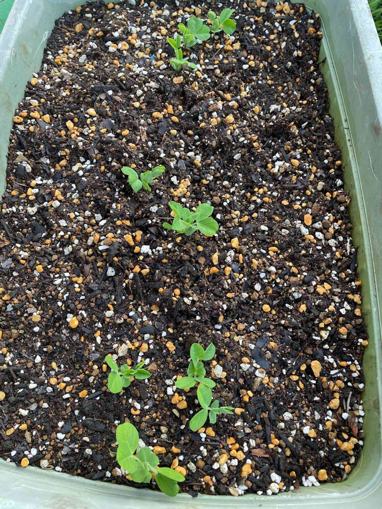 プランターに種蒔いたエンドウ出ました🌱初めて栽培なので楽しみ😆