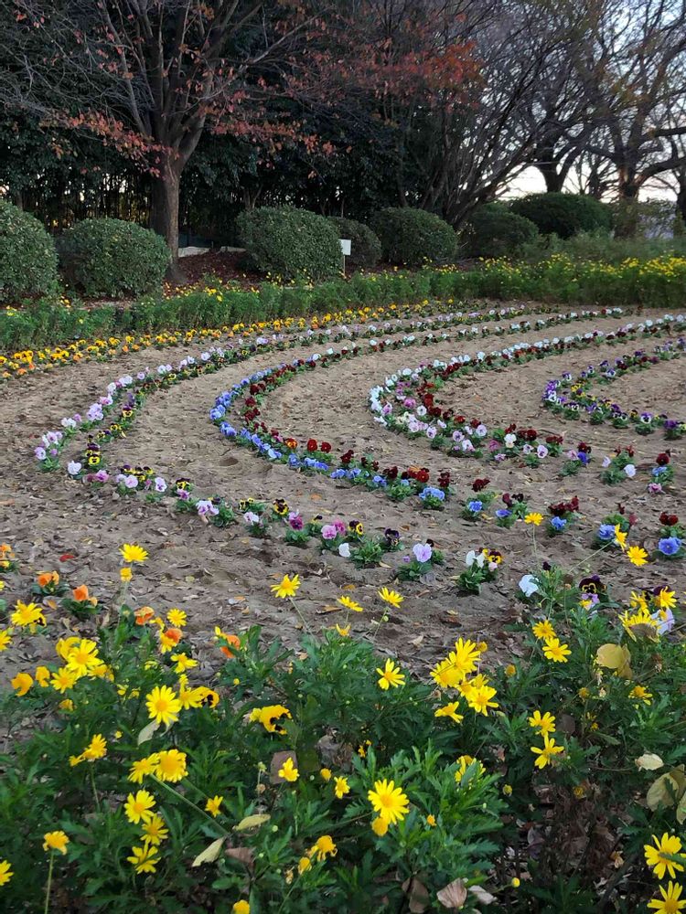御嶽山自然の森公園の花壇に彩りのパンジーが植えられていました。😊👍🎶