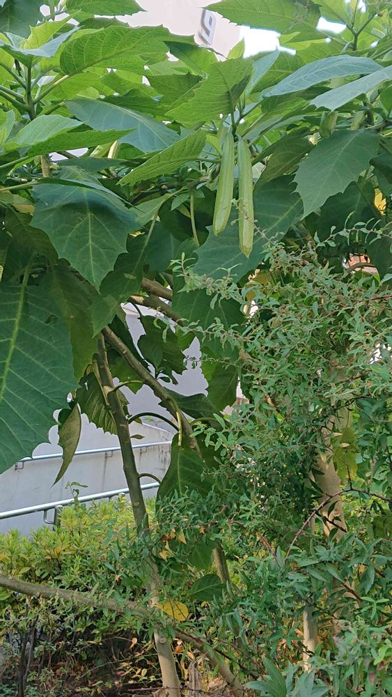 本日3投稿目ですが先週満開だったエンジェルトランペットが、昨日帰る時に?🤔枝豆空豆です😂一週間ですよ😲