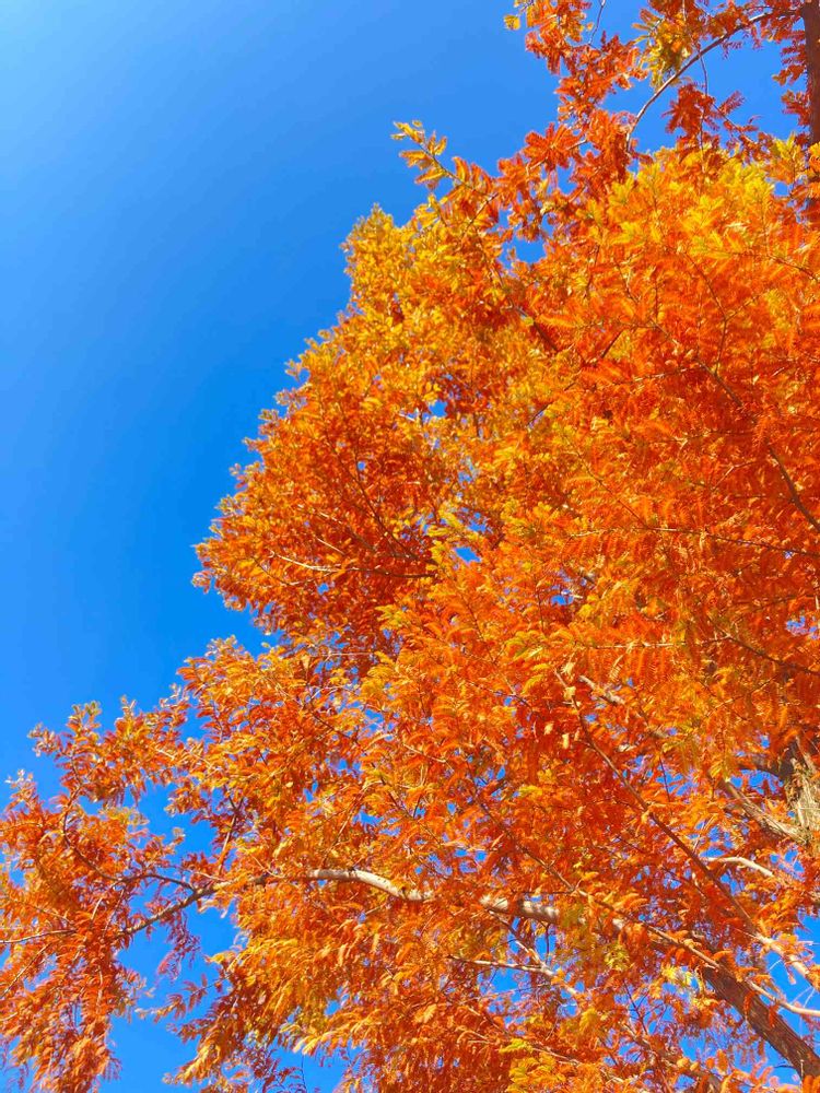 ꒰⋈◍>◡<◍꒱キャ~ෆ💕青空にオレンジが映えまくりですねー🍁💛🧡