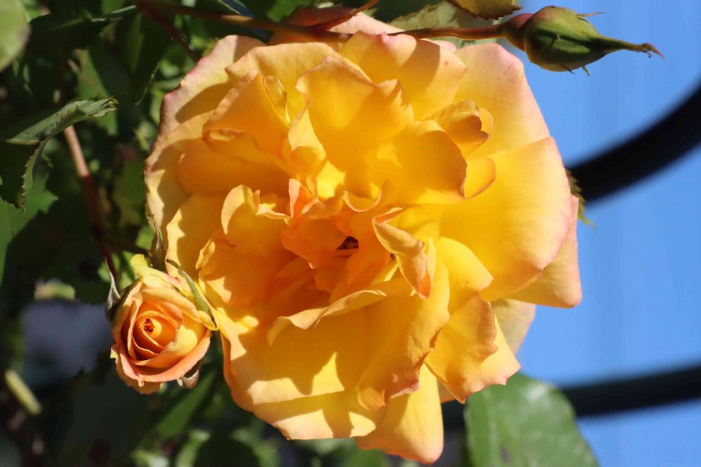 庭で鉢植えのバラ サハラ'98が咲いています。