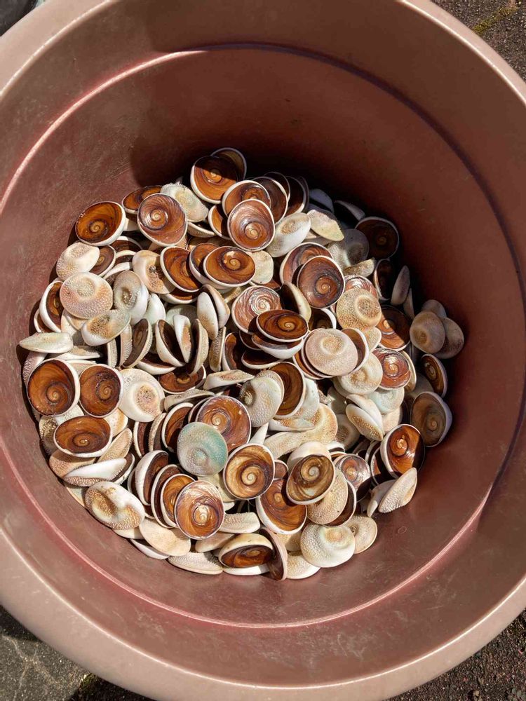 サザエの貝殻の蓋を鉢底石のかわりにしてる人がいるので、私ももらって試してみます。🌀模様😵💫
