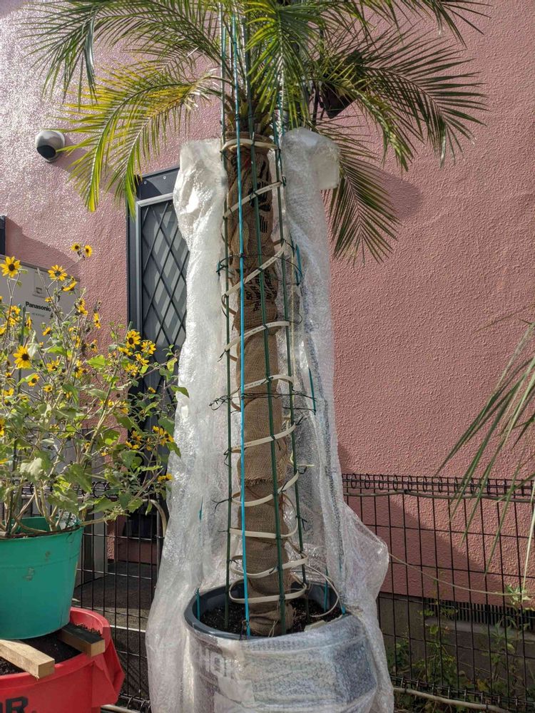 前回冬の大雪で、軒下移動も細工してなく、そのまま葉っぱ部分は出したまま、雪まみれ→全部茶色になってしまったので、やっぱり何かしらは、養生しないと関東では厳しいかな と思ってます。