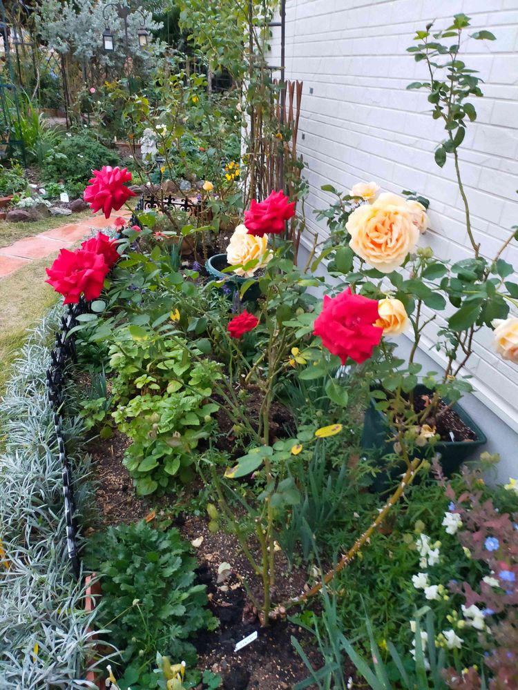 バラ、お見事です。草のない美しい庭、努力なしには、見られません。👏👏👏