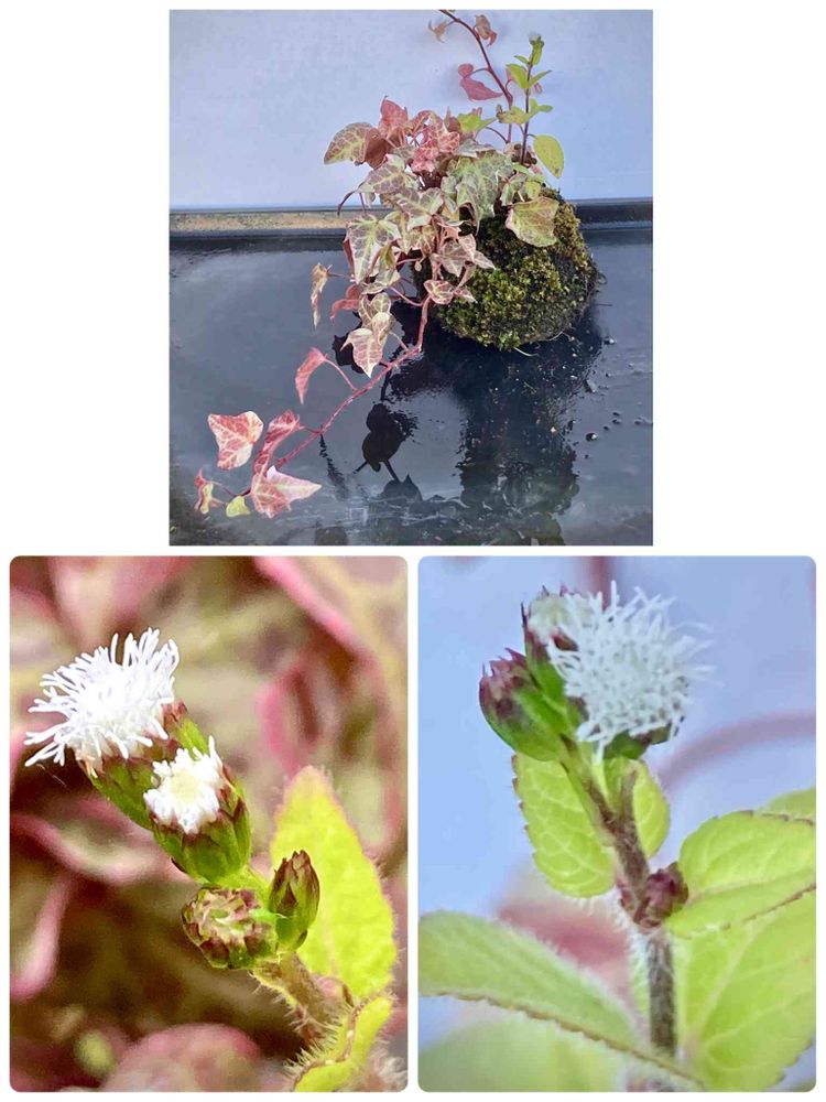その脇にいつの間に入り込んだのか、小さな小さな白花アザミの様な花が咲いていました。葉はギザギザではない…🍀🌸