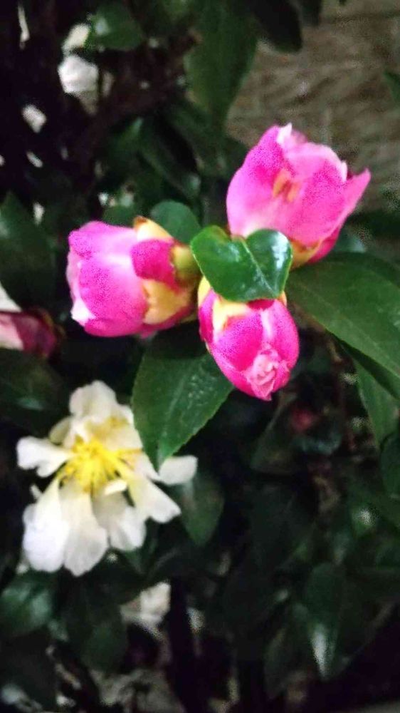 らなたんさんのプレゼント🎁💓のピンクの山茶花をアップして見るとおしくらまんじゅうしてたわ(笑)
