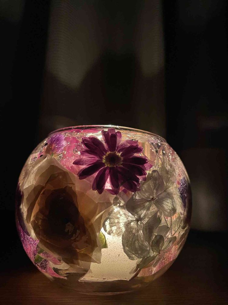 ランタンキャンドル、部屋を暗くしてロウソクを灯すとこんな感じです。