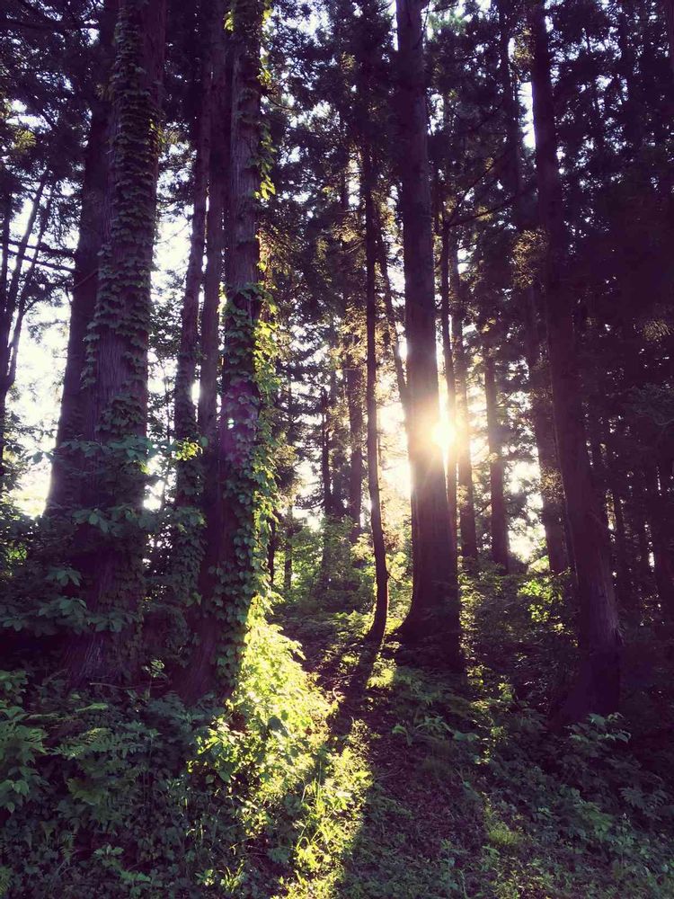 今日の 朝 さんぽの とっちゅうで、木から 温かい 光が 私の 目に 当たりました、ミドリとの コラボ、小さな スキーマから 日が きれいでした、#iphone6plus📸で とりました。