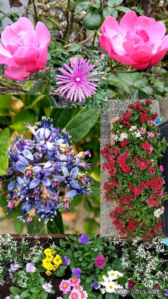 医院と薬局、隣の病院の花達をコラージュしてみました😁🎶