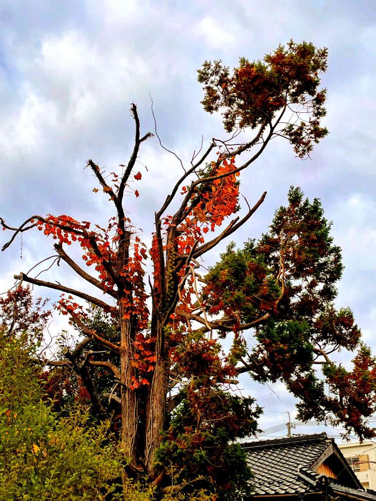 出勤途中、何時も見ていた、通り道の樹木の蔦の紅葉🍁が、色鮮やかになって来ました。
