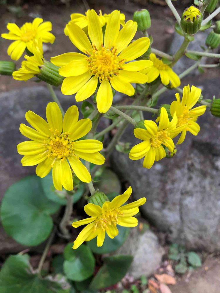 真っ黄色な花がすうーっと伸びるツワブキ。