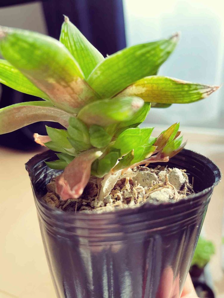 反対側にも結構くっついてにょきにょきしている。ポットが狭いしそろそろ分けてあげないと感はある、けど、どうやったらいいんだ?!