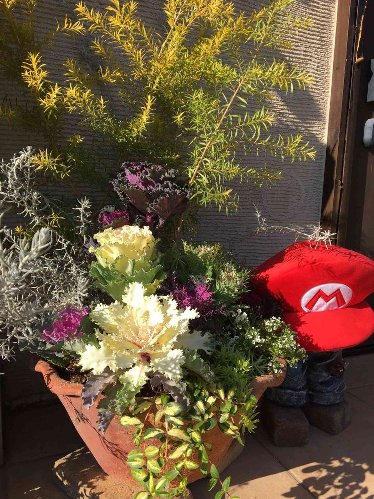 ちょうど毎年暮れに作る葉牡丹の寄せ植えができたので…