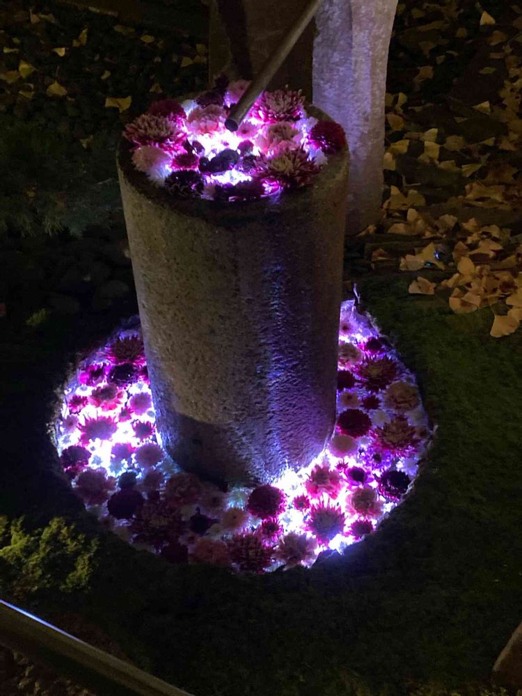 行田八幡神社⛩の水琴窟の花手水もライトアップされていました🥰