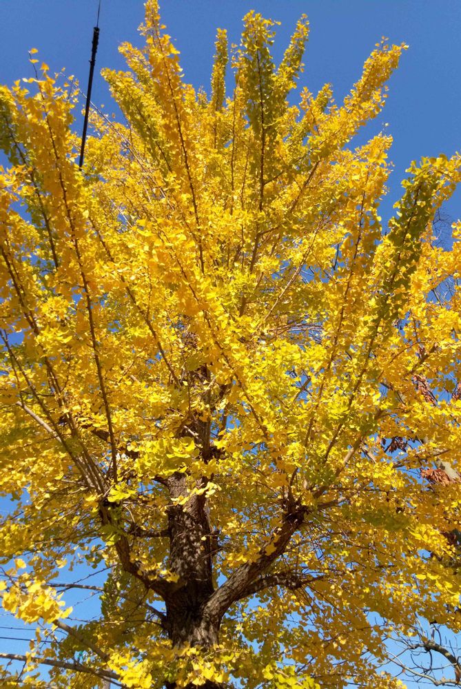 通りすがりの、とある公園で見かけました、銀杏(イチョウ)の木の黄葉☺️