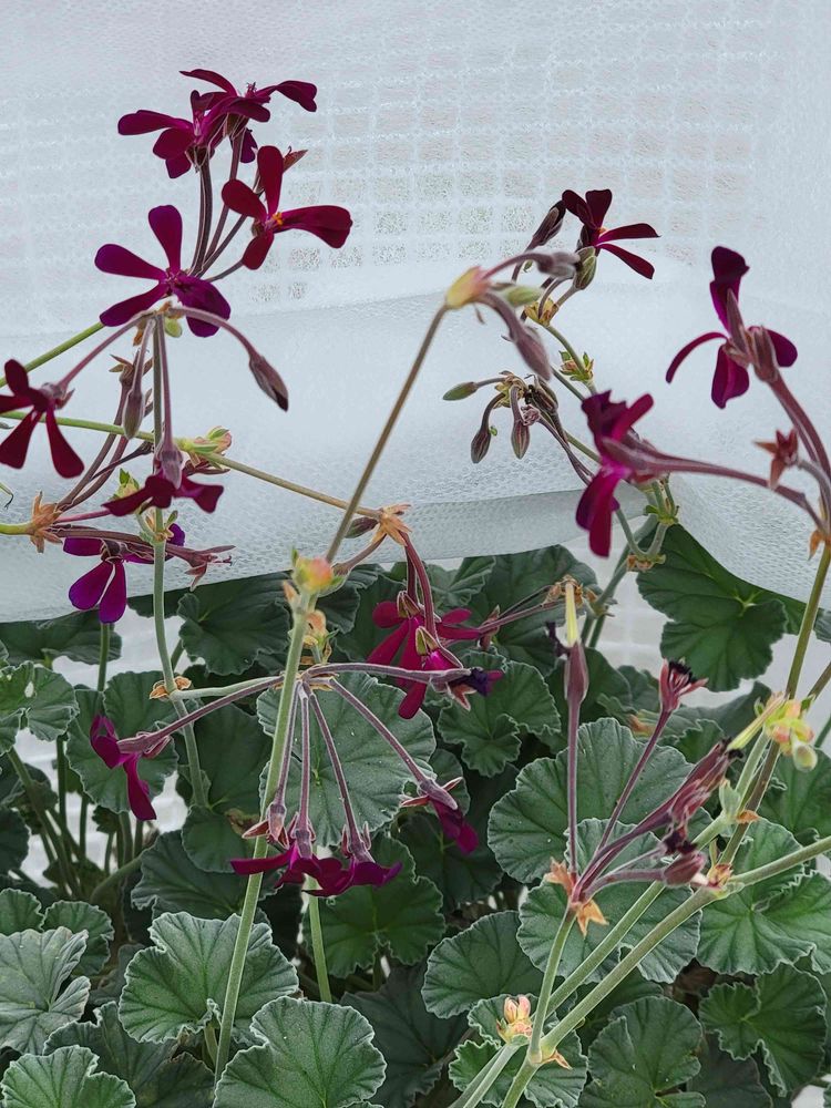 赤紫色の可愛いお花さんにシルバーリーフの🌿ペラルゴニウムシドイデス😄