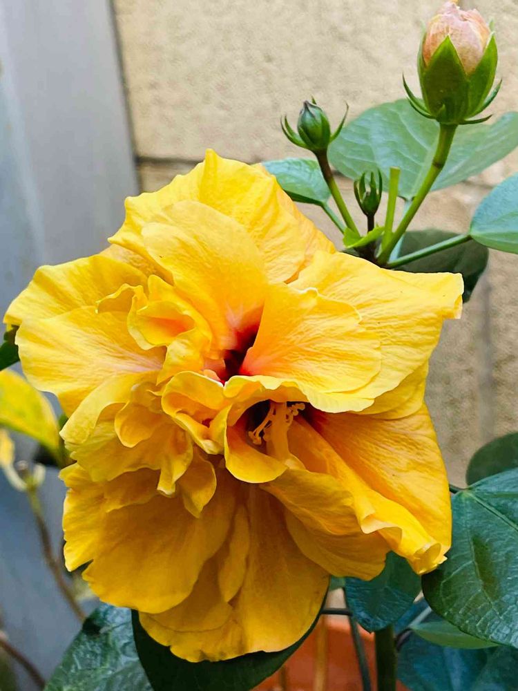 ピンクのサンダルさんの窓辺,ハイビスカス アドニスダブルイエロー,鉢植えの投稿画像