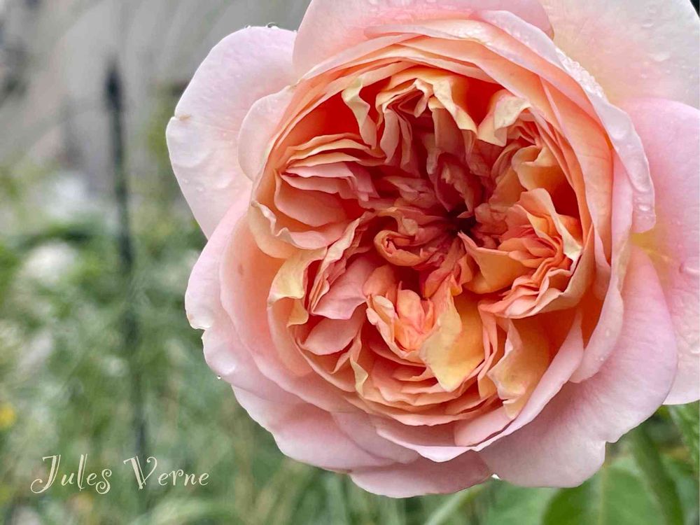 勝手にジュールヴェルヌ祭り🧡 その魅力⑤ 強香です❣とってもいい香りなんですよ〜✨クセのない🌹らしい香り✨ 私はエブリンの香りは嗅いだことがないのだけれど、なんとなく色合いや花型が似てるよーな感じがして でもって香りが良いので そちらの血筋なのかしら⁉️なんて思ったり‥🙄