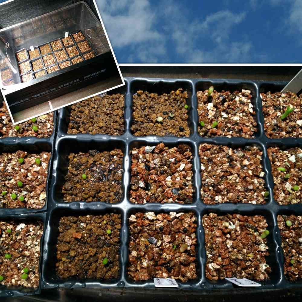 ほかのサボ達が次々発芽する中、アガベのみ3週間ぐらい音沙汰ナシでした。半ばあきらめて屋外の日なたにフタ付で移動したら、(実生箱の中でジャマになったので😝)それがきっかけかどうかはわかりませんが発芽が始まりました。10蒔いて6成長で現在3枚目の葉が出てきています。なのでねこかぷとさんちもまだいけるかも?発芽しますうように!