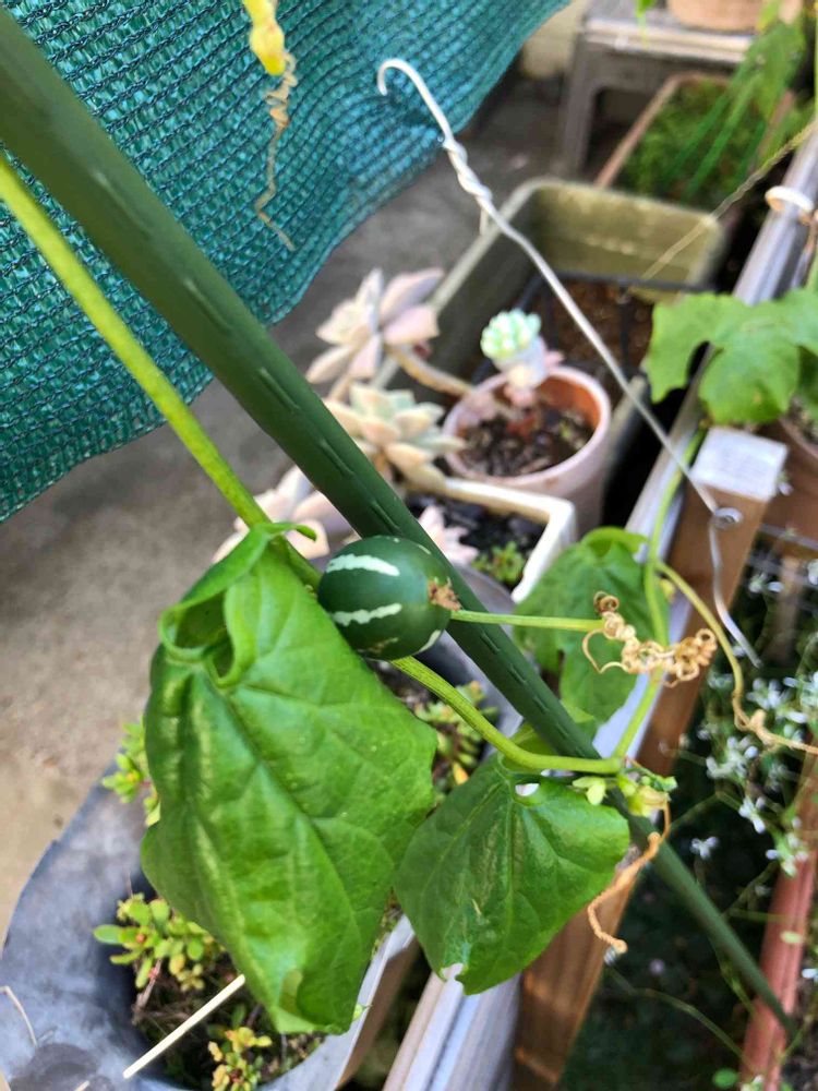 🦓去年の種を蒔いたら秋の終わりに急に成長しだして、たくさん花が咲いたけど実が大きくなったのは一つだけでした💦