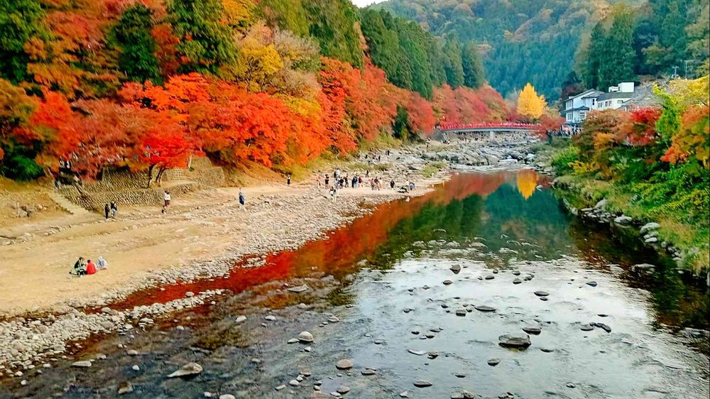 川面に映り込み、さらに色鮮やかな昼間の景色