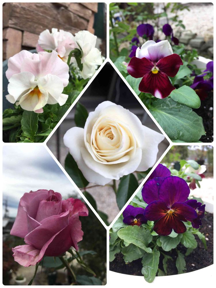 左上は個人育種家さんの「花ろまんすみれ 恋もも」だそうです。ちょっとヒラヒラしていて可愛いので、白いスーパーアリッサムと寄せ植えに🤍そちらは落ち着いていい感じになったら投稿したいです☺️