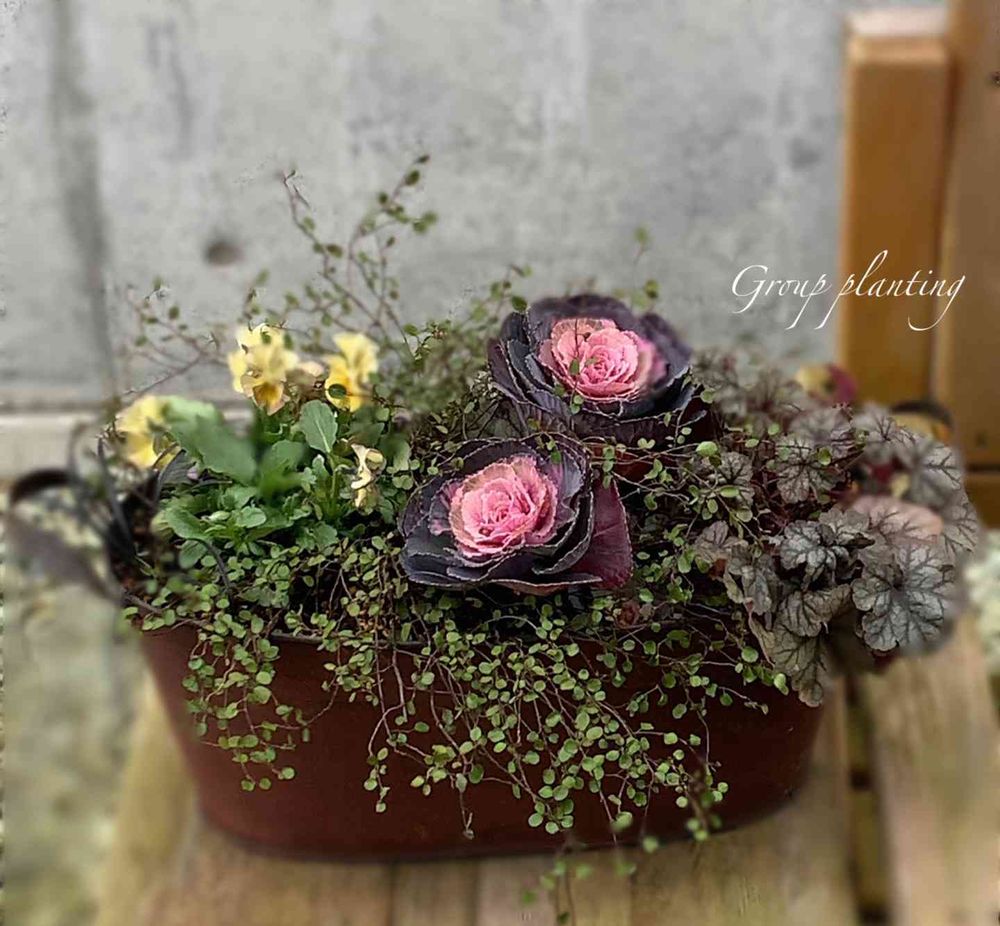 ちょっと暗めな寄せ植えになり葉牡丹だけ浮いた感じになってしまいましたが 見て頂けて嬉しいです😊