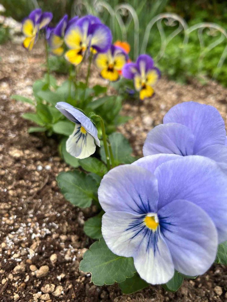 花壇のパンジーを🤳買って来た時より色が薄くなった感じ😁