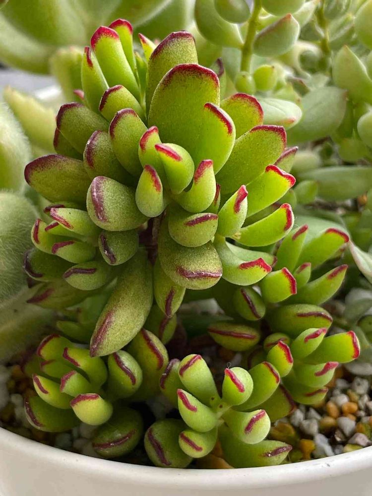 この小町娘は、秋作業でペンデンスと熊童子錦と一緒に鉢まとめしました👍葉数が増えてギュギュッと詰まって、葉先がポッ!っと赤く色付いてきて、一層可愛くなってきました🤩