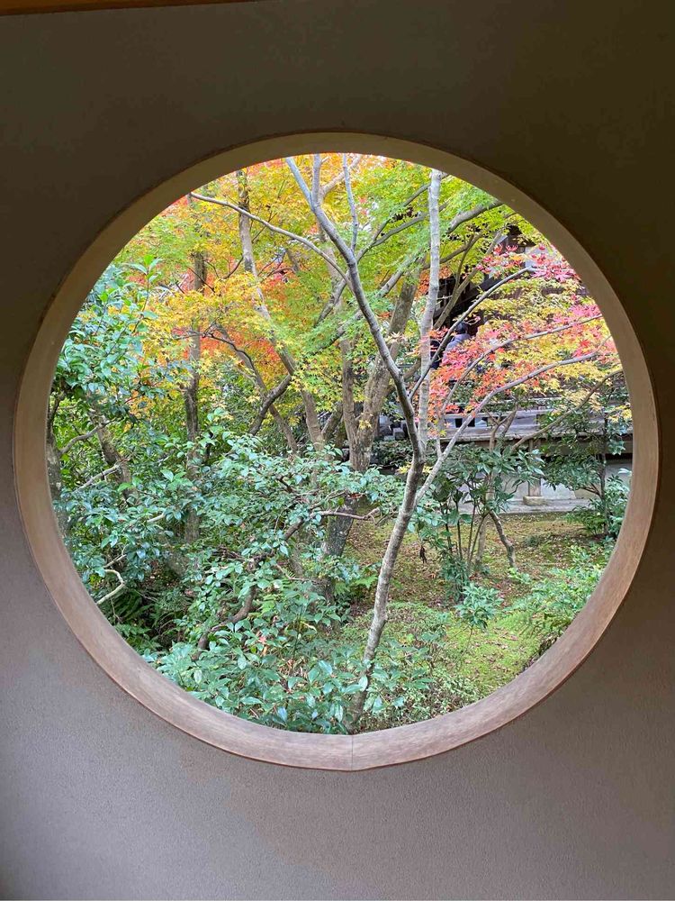こちらにも悟りの窓?があるんですね✨✨ ちょうどもみじが映えて写っていますね🍁