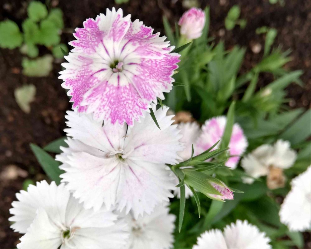 セキチクの白花とピンク斑入りの花 2022-11-17