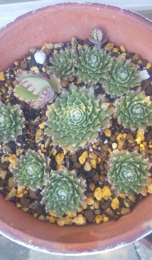 子株の中に変り種の子株(子宝草)が ひとつ紛れています☺️。
