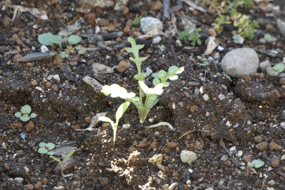 昨年ここで、ネモフィラを育てていました。こちらもこぼれダネから芽吹いたようです。