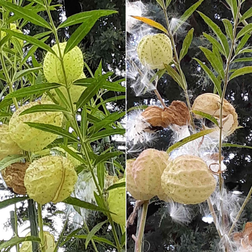 左の緑の風船が茶色っぽくなってくると中からフワフワの種が出てくるのですね