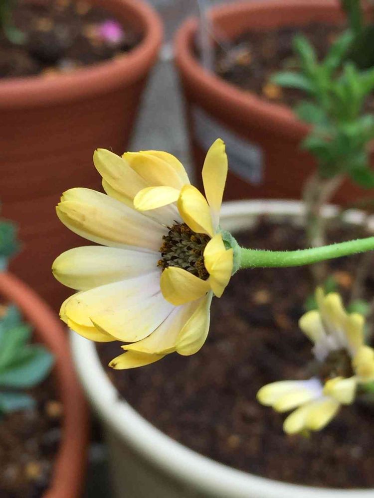 覗いたらビロビロのびて咲いていたので植え替えて日向に置く事にしました。