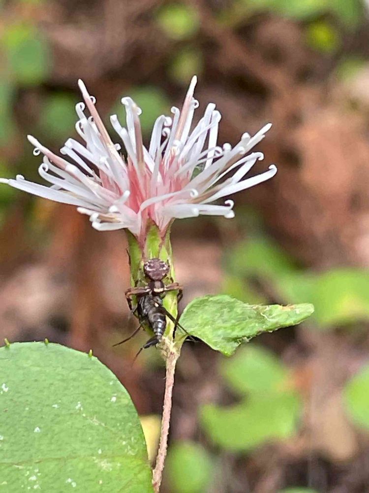 コウヤボウキの花にやって来た虫をクモがガッチリ捕まえてる❗️
