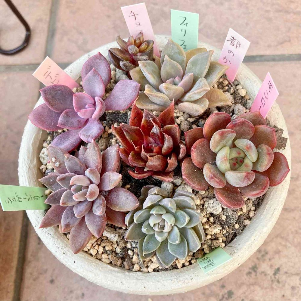 2021年5月にメルカリで『クラプトベリア6株セット』でお迎えした子たちと、いただいたモンローxモラニーの7苗を寄せています☘