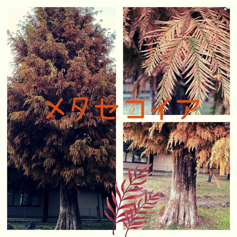 昨日行った公園で落葉間近のメタセコイアが錆色に変わった葉を付けて聳え立ってました✨